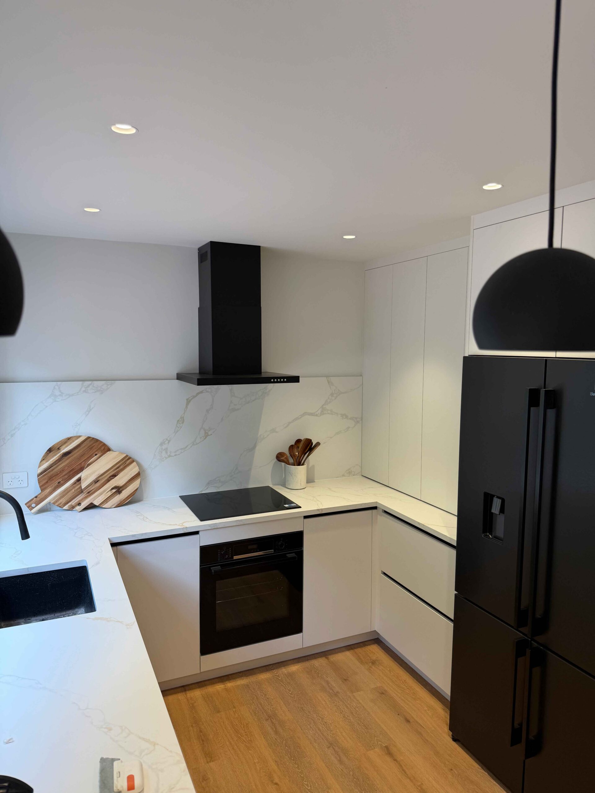 This was a project we undertook in Waiatarua, which the initial scope of work was a quick renovation remodelling and repairing the interior due to water damage and a general need of some maintenance. It became very apparent the house was in a poor state as we began demolition. This led to everything being replaced including framing, cladding, joinery and roofing. A few extra touches were also added a new deck to the rear of the house and a new front entry/ outdoor living area to the front of the house. This was a very challenging yet exciting project for us as we had a large amount of creative freedom. Owners Rob and Paula are very happy with their freshly renovated house which has gone from old and cold to nice new and cosy.